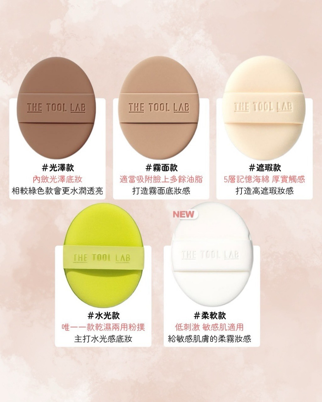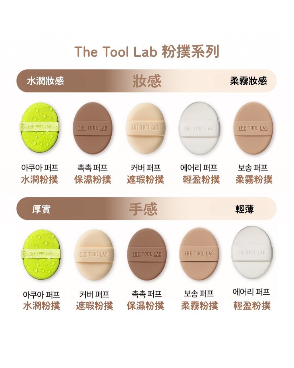 不同顏色的粉撲 代表不同上妝效果